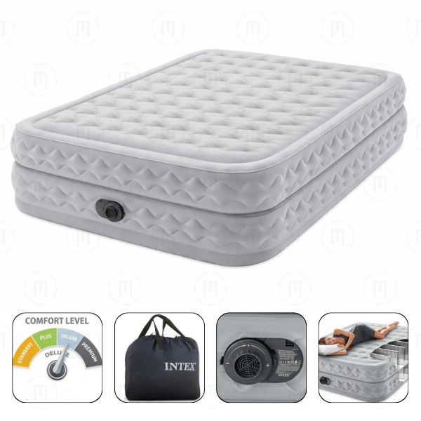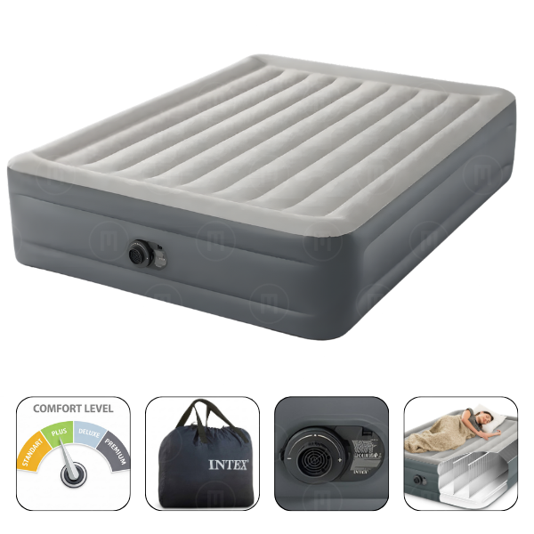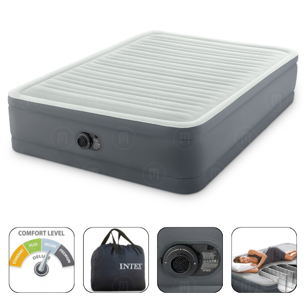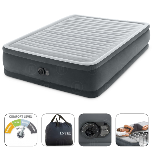 INTEX Надувная кровать «Velur Comfort-Plush» 152х203х46 см, встр.нас. 220В, до 272кг
