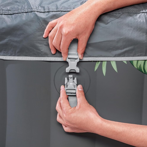 С насосом, который быстро надувает спа, нагревает воду, фильтрует и управляет системой массажа, этот спа-пруд очень удобен в использовании. Насос легко доступен изнутри и имеет подставки для чашек с напитками и закусками. В комплекте также идет дозатор ChemConnect™, который поддерживает чистоту и здоровье воды, равномерно распределяя необходимое количество хлора. В качестве дополнения, Aruba снабжен укрепленной крышкой, которая удерживает тепло, когда спа не используется, а также предотвращает накопление пыли и мусора на воде.
