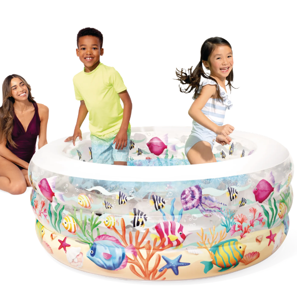 Детский надувной бассейн 152х56 см «Аквариум» 360 л, от 6 лет, надувное дно (Intex 58480).