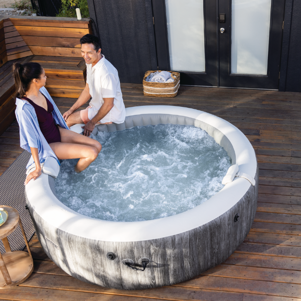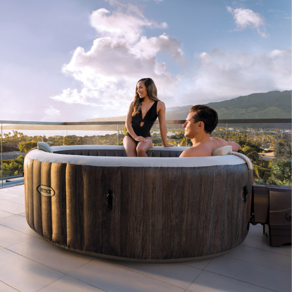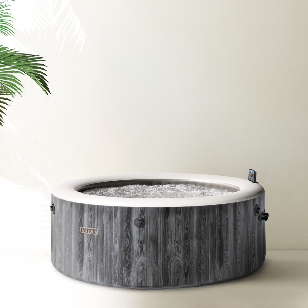Intex PureSpa™ Greywood Deluxe 28442 — это надувной гидромассажный спа-бассейн премиум-класса диаметром 216 см, рассчитанный на комфортное размещение до 6 человек. Элегантный дизайн «под дерево» гармонично впишется в ваш сад или террасу, создавая идеальное пространство для отдыха.