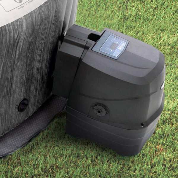 Панель управления, очень практичной в использовании. Его можно использовать без проводов и отсоединить от блока двигателя. Благодаря отличной батарее он может работать до 48 часов без подзарядки. На верхней части надувного устройства имеется зажим, чтобы расположить панель управления в более удобном для пользователя положении. Одним нажатием кнопки активируются 170 бодрящих струйных диффузоров.