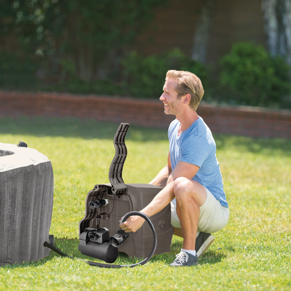 Этот надувной SPA готов менее чем за час: фактически, для сборки технического блока и накачивания элементов требуется 15 минут и 50 минут для заполнения 1098 л воды.