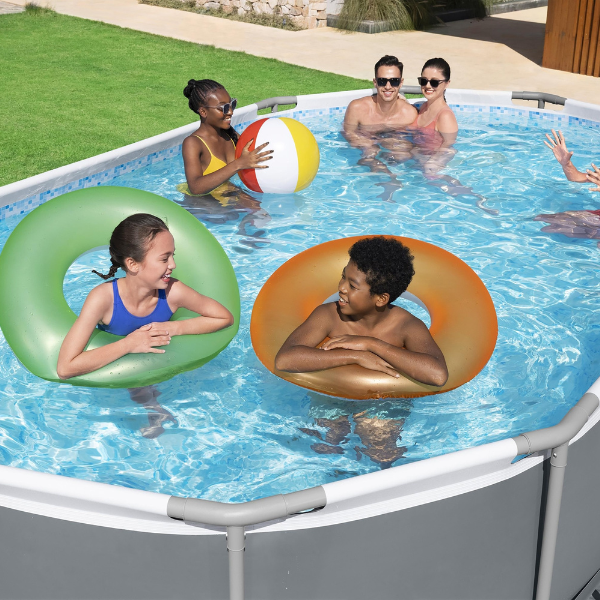 Каркасный бассейн Bestway 56448 Power Steel овальной формы отличается высокой прочностью и устойчивостью. Чаша выполнена из высококачественного трехслойного ПВХ: два слоя плотного винила и один — полиэстер для особой прочности. Каркас металлический, нержавеющий, оцинкованный.