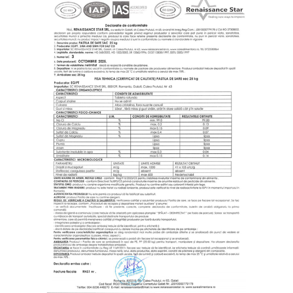 Соль Таблетированная NaCI, min 99.5% (25 кг)