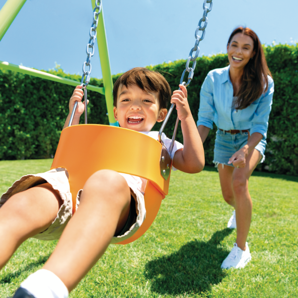 Детские качели в форме ведра, оснащённые отверстиями для ножек и высоким спинным упором для лучшей поддержки и безопасности. Регулируемая длина подвеса позволяет легко адаптировать качели под разные конструкции. Их можно подвесить к любой раме качелей и при необходимости быстро заменить. Создайте собственную игровую зону для детей в соответствии с вашими предпочтениями.