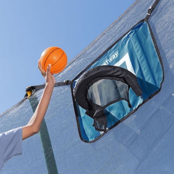Баскетбольный игровой комплекс Bestway® Xtreme Air™ делает прыжки на батуте ещё более увлекательными и активными. Комплекс подходит для большинства батутов и может крепиться к опорным стойкам как внутри, так и снаружи батута, позволяя детям и взрослым играть разными способами.