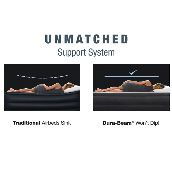 Встроенный электронасос позволяет быстро надувать и сдувать кровать и дает возможность отрегулировать ее упругость.