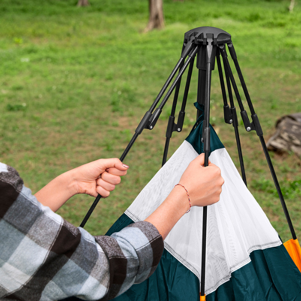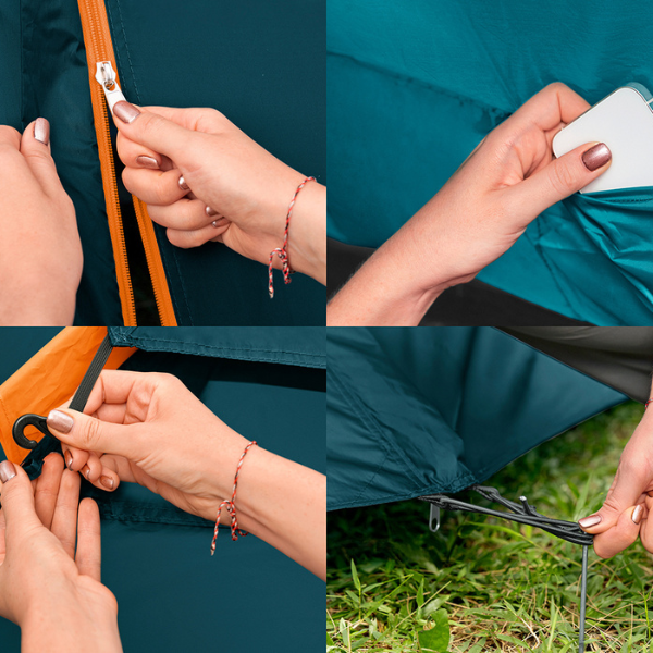 Благодаря системе SwiftClick™ и стекловолоконным дугам диаметром 8,5 мм палатка устанавливается всего за 5 минут. Центральный узел с уже соединёнными дугами обеспечивает простой и интуитивно понятный монтаж, повышенную устойчивость и минимальное количество деталей.