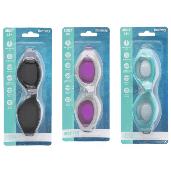 Ускорьте своё плавание и добавьте ярких красок с очками Bestway® Accelera™! Идеальны для взрослых от 14 лет, выберите пару, которая соответствует вашему настрою и целям.