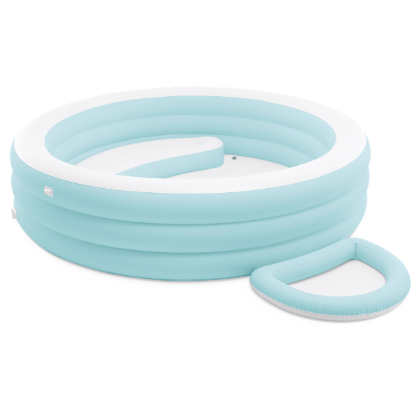 Бассейн оснащён удобным надувным сиденьем и съёмным навесом с защитой от ультрафиолета UPF 50+, который создаёт приятную тень в жаркую погоду. В комплект также входит надувная ванночка для ног для дополнительного удобства.