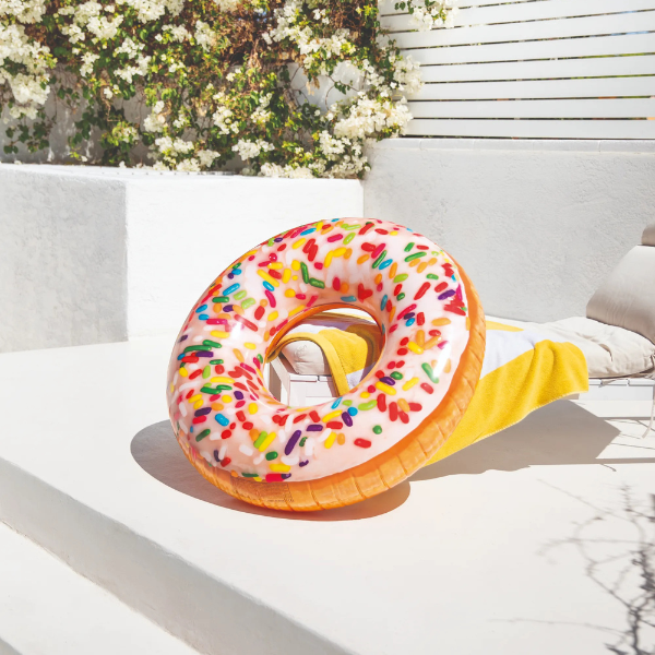 Пончик в глазури — отличный пляжный аксессуар. Это не только симпатичный, но и удобный надувной круг, на котором вы можете как плавать, так и просто отдыхать на воде.