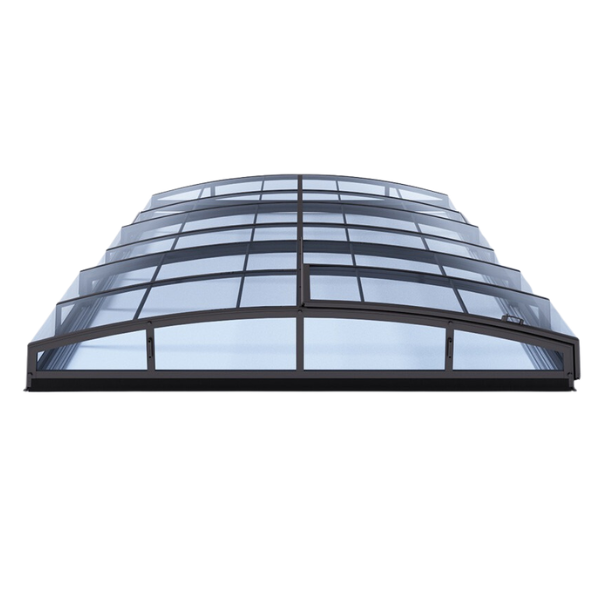 Материал заполнения секций - cотовый поликарбонат 4 мм. Этот материал не требует особого ухода и обеспечивает хорошую теплоизоляцию, помогая поддерживать комфортную температуру воды в бассейне и внутри павильона. Поликарбонат также обладает защитными свойствами от ультрафиолетового излучения.