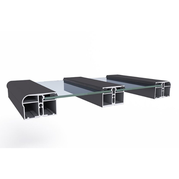 Низкие плоские направляющие рельсы "AIR" разработаны для скрытия крепежных элементов и обеспечения удобства при передвижении по ним. Рельсы имеют шаг 70 мм между собой и высоту 20 мм, что делает их удобными и функциональными. Их поверхность обработана методом анодирования с использованием технологии "elox", обеспечивая надежную защиту от внешних воздействий. Рельсы легко устанавливаются и обладают оптимизированной системой водоотвода. Для каждой модели павильона доступна опция заказа дополнительных направляющих рельсов.