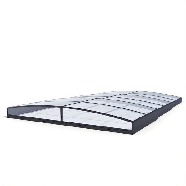 Продолжение направляющих рельсов обеспечивает дополнительный комфорт, позволяя максимально использовать всю полезную площадь бассейна и обеспечивая доступность ко всем его сторонам. Стандартная длина направляющих рельсов соответствует размеру павильона и идеально подходит для маленького сада с бассейном. Все павильоны оснащены направляющими рельсами с обеих сторон, обеспечивая полную функциональность и удобство использования. Длина направляющих рельсов точно соответствует общей длине павильона.