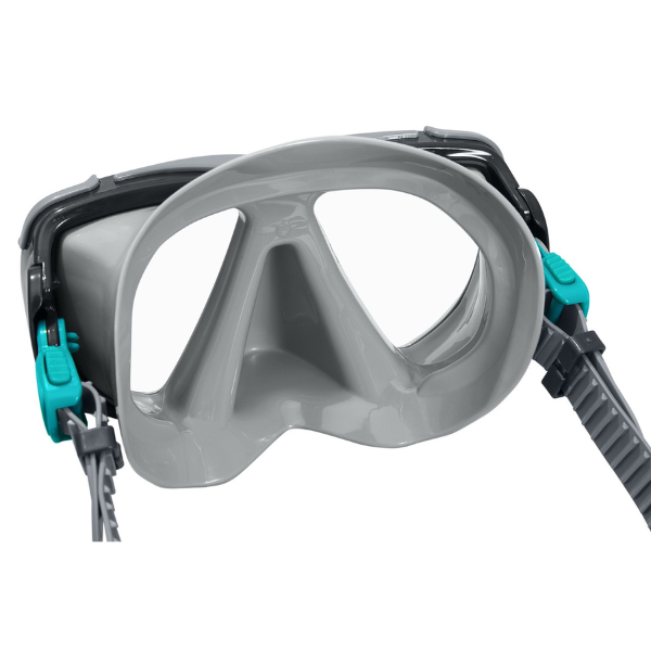 Маска оснащена герметичным ободком, снижающим протекание, и полностью регулируемым ремешком для точной и удобной фиксации. В комплект входит регулируемый зажим для крепления трубки к маске. Трубка имеет мягкий загубник для дополнительного комфорта. Весь набор изготовлен из материалов без латекса для повышенной безопасности.