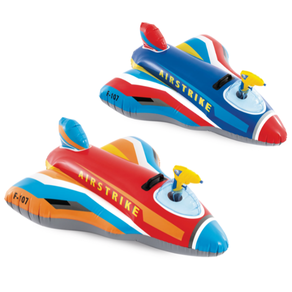 INTEX Plută-saltea gonflabilă “Avion de vânătoare cu pistol de apă” cu mâner, 112х91 cm, până la 40 kg, 3+, 2 culori