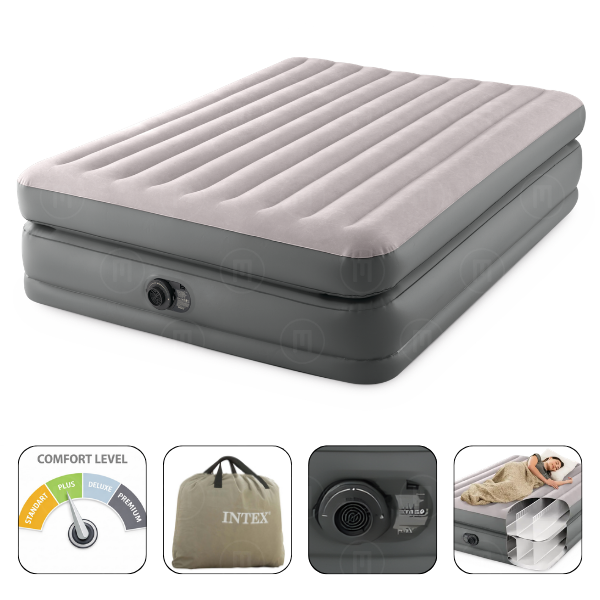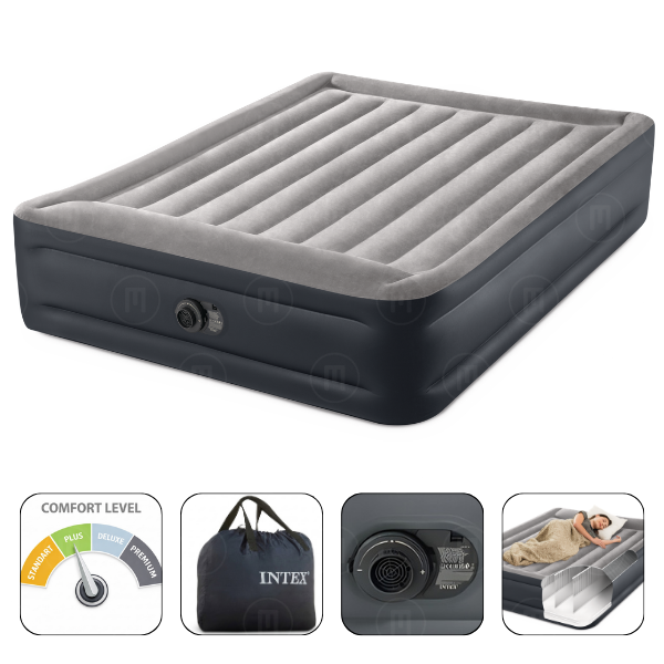 INTEX Saltea gonflabilă “Velur MID-Rise Air” 152x203x30 cm cu tetieră și pompă încorporată 220V, până la 272 kg