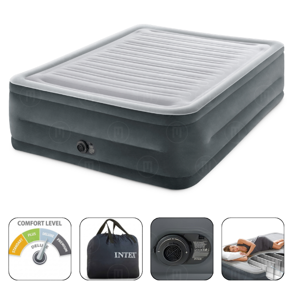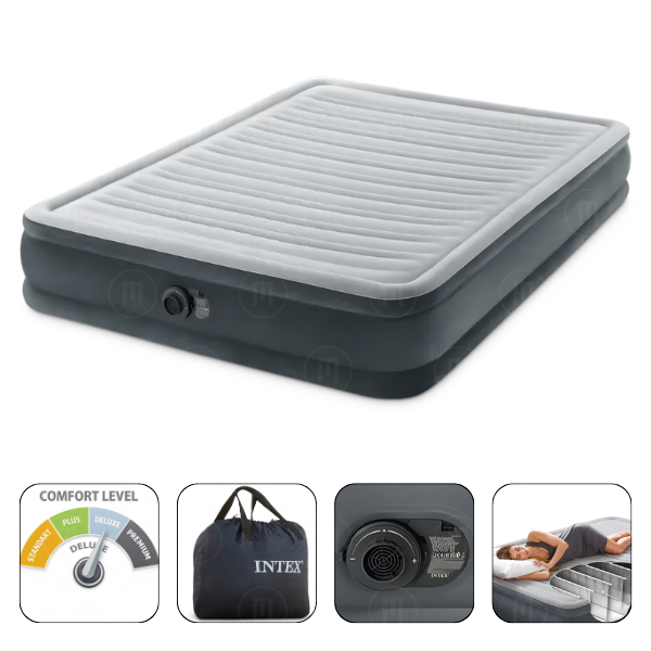 INTEX Pat gonflabil “Velur Comfort-Plush” 152х203х46 cm cu pompă încorporată 220V, până la 272 kg