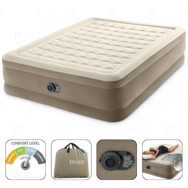 INTEX Pat gonflabil “Velur Ultra Plush” 152x203x46 cm cu pompă încorporată 220V, până la 272 kg