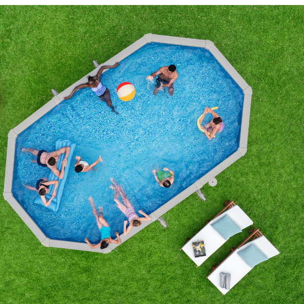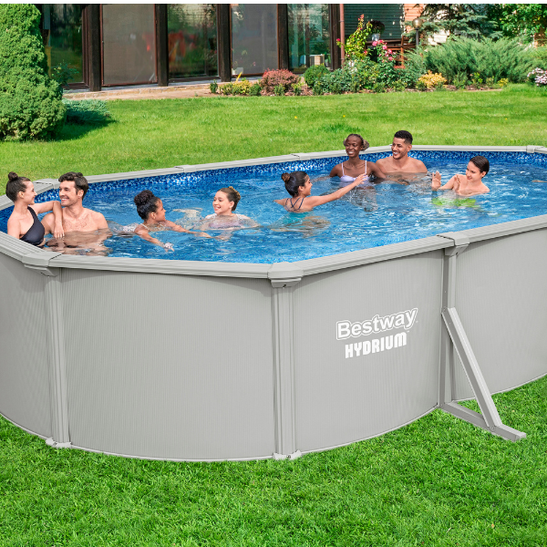 Piscina ovală din oțel Bestway® Hydrium™ transformă orice curte într-un adevărat colț de relaxare. Dimensiunile generoase și volumul de aproape 20 000 litri oferă suficient spațiu pentru întreaga familie, oricând dorești.