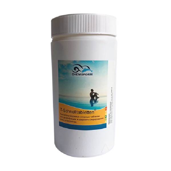 Сhemochlor-T-Schnellbletten – Tablete instante pentru dezinfectarea apei din piscină. O tabletă de 20 g conține până la 12 g de clor activ. Distruge eficient bacteriile, virușii, ciupercile, mucegaiul și algele. Utilizat în mod obișnuit pentru clorurarea cu șoc, dar poate fi folosit și pentru tratarea discontinuă. Medicamentul este foarte activ – aproape tot clorul activ, atunci când este dizolvat, trece într-o formă liberă și participă la procesele de dezinfecție și oxidare. Nu conține var. Formula pastelei permite să fie utilizată în apă de orice duritate.