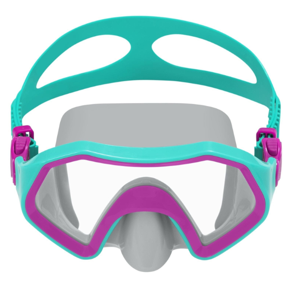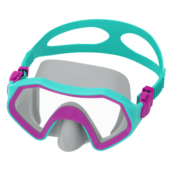 Masca ideală pentru jocuri acvatice și înot în piscină sau în mare. Destinată copiilor de la 7 ani. Lentilele din policarbonat oferă un câmp vizual larg, iar etanșarea dublă la margini garantează impermeabilitate și împiedică pătrunderea apei. Masca este complet fără latex și are o curea reglabilă în două secțiuni pentru fixare sigură. Disponibilă în trei culori.