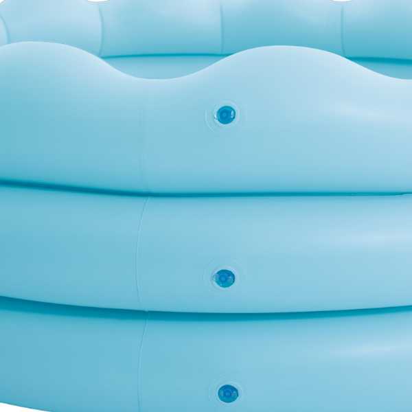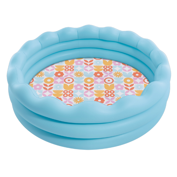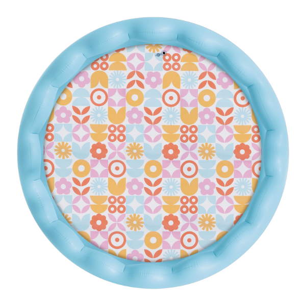 Piscină gonflabilă pentru copii cu margini ondulate, destinată copiilor de la 3 ani. Fundul are un model retro floral colorat, care creează o atmosferă veselă și atractivă pentru joacă. Piscina este prevăzută cu un robinet pentru golire ușoară.