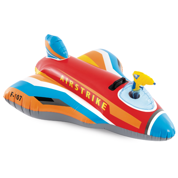 INTEX Plută-saltea gonflabilă “Avion de vânătoare cu pistol de apă” cu mâner, 112х91 cm, până la 40 kg, 3+, 2 culori