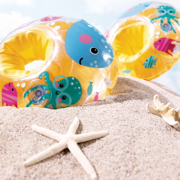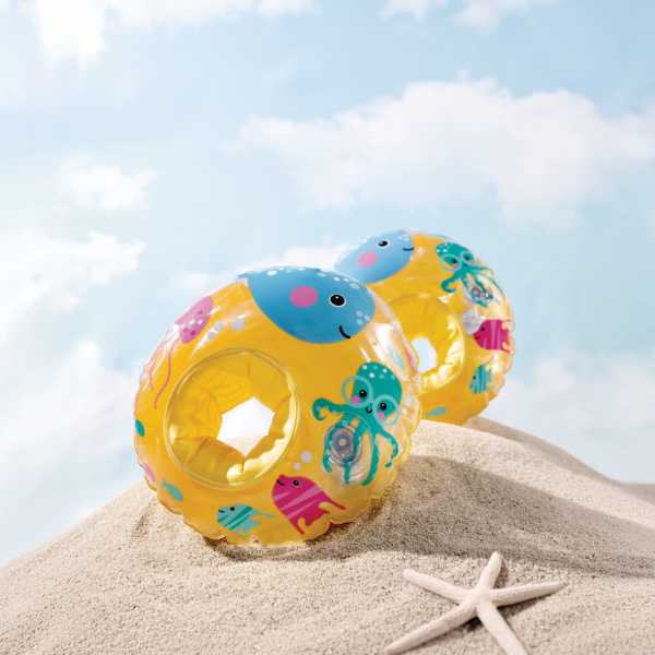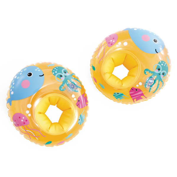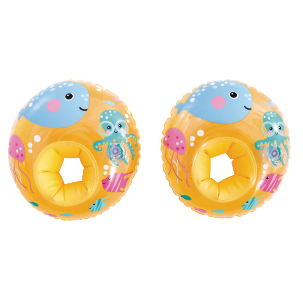 Mâneci gonflabile vesele pentru înot, decorate cu imagini ale prietenilor marini, concepute special pentru copii mici care învaţă să plutească și să se simtă confortabil în apă. Fiecare mânecă are două camere de aer pentru siguranță sporită și stabilitate.