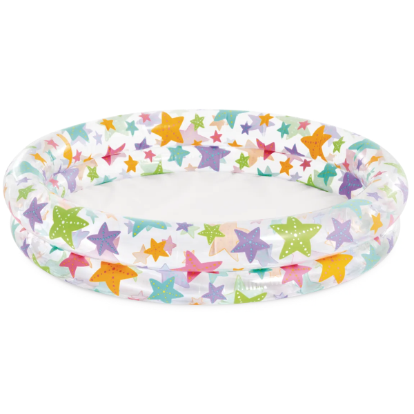 Piscină gonflabilă pentru copii de la 2 ani, cu model de fructe sau cu imprimeu viu de stele de mare. Datorită marginilor joase, copilul poate intra singur în apă. Modelul este realizat din vinil rezistent și moale. Ideală pentru distracție în zilele călduroase.