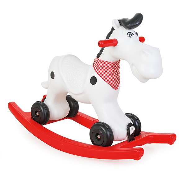 Acest simpatic balansoar este dotat cu un scaun curbat confortabil, 2 mânere care pot fi ușor apucate de către copil și o platformă care poate fi îndepărtată, astfel copilul poate plimba căluțul tras cu o sfoară sau căluțul poate plimba copilul cu ajutorul celor 4 roți prevăzute. Platforma detașabilă cu sistem de blocare patentat, asigură o legănare ușoară și în același timp și o bună stabilitate. Mișcarea oscilantă dezvoltă coordonarea, întărește aparatul vestibular și antrenează mușchii.