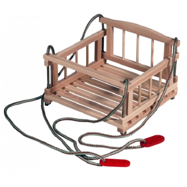 Leagănul este fabricat din lemn de fag iar acoperirea cu ulei lipsește. Dispune de părți laterale și spetează rigide pentru siguranța copilului. În față este proiectată o curea de siguranță împortiva căderii sau a accidentării.