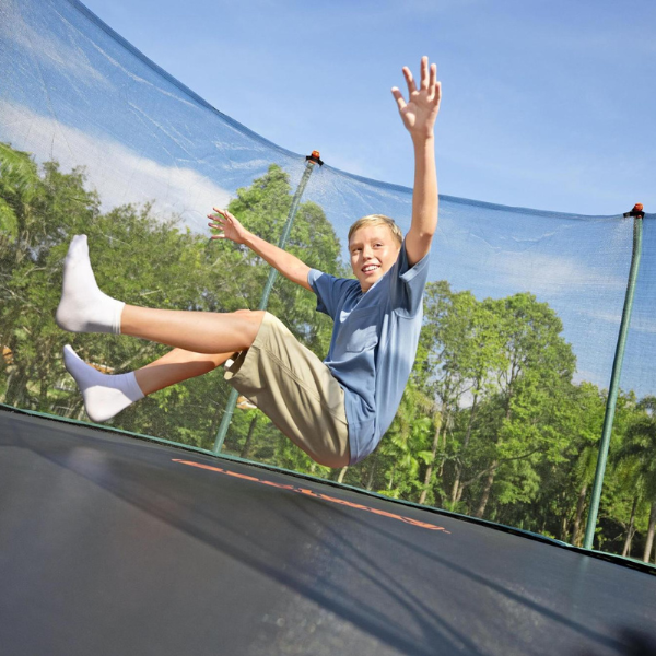 - Suprafața flexibilă și rezistentă pentru sărituri se adaptează mișcărilor copilului, asigurând un salt lin și sigur.