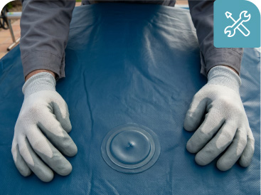 Ремонт чаш бассейнов: Устранение проколов и порезов любой сложности с использованием метода горячей вулканизации и армированного ПВХ.